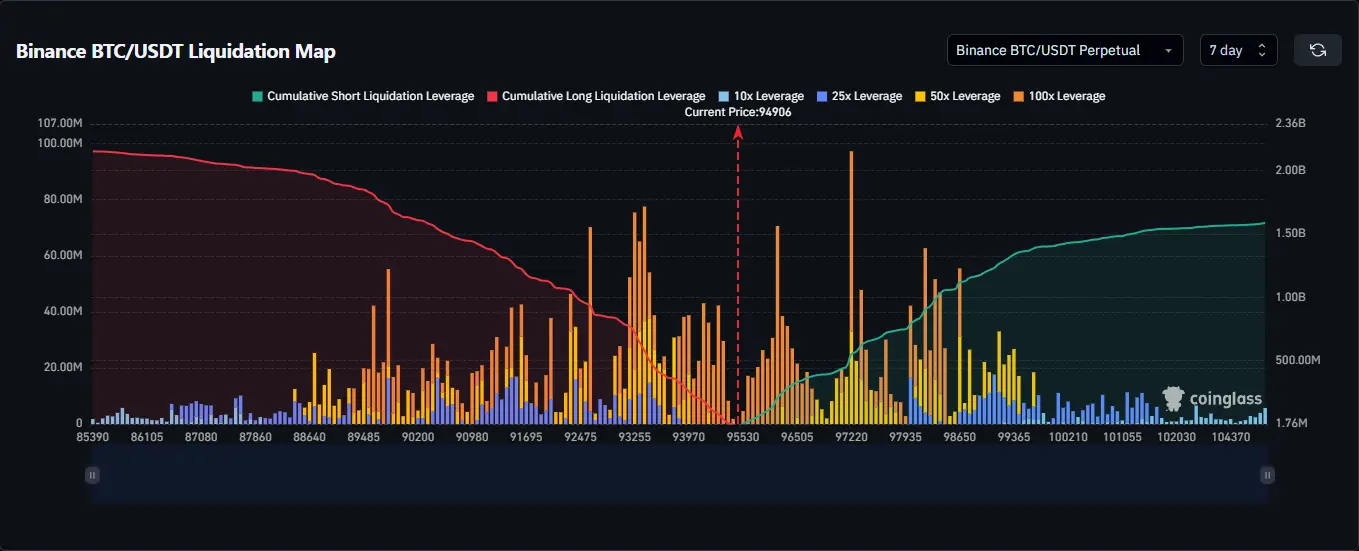 Insight: High-density long liquidation clusters exist at $92,000 - $93,500. Smart money may push price here to fill bags. Above, $98,000 is the fuel tank for short squeezes.