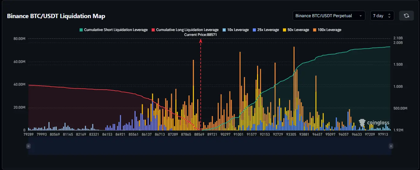 - Downside Support (Pain Points): Long liquidation clusters are dense at $87,200 and $85,000. Price testing the $88,000 line this week is essentially market makers testing the liquidity depth of this zone. A valid break below $87,200 could trigger a Cascade Liquidation, sending price directly to $85,000.