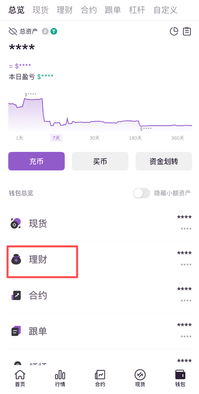 2.进入个人钱包页面,点击理财账户。