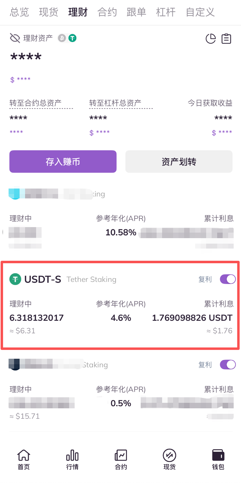 3.进入理财账户页面,查看理财项目列表,点击目标Staking资产。