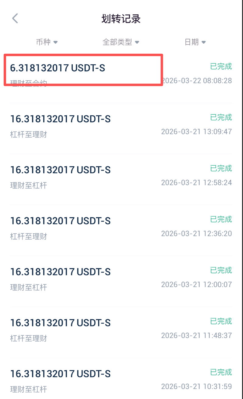 4.进入资金划转页面,划转方向选择从理财划转到合约;点击划转币种一栏右侧箭头,选择目标Staking币种(注:Staking资产会以“币种-S”形式显示在您的账户中,如BTC-S);输入币种数量,您也可以参考划转数量栏下方当前币种可用数量,点击右侧全部,实现一键划转当前所有币种。最后点击立即划转按钮,即可完成划转。
