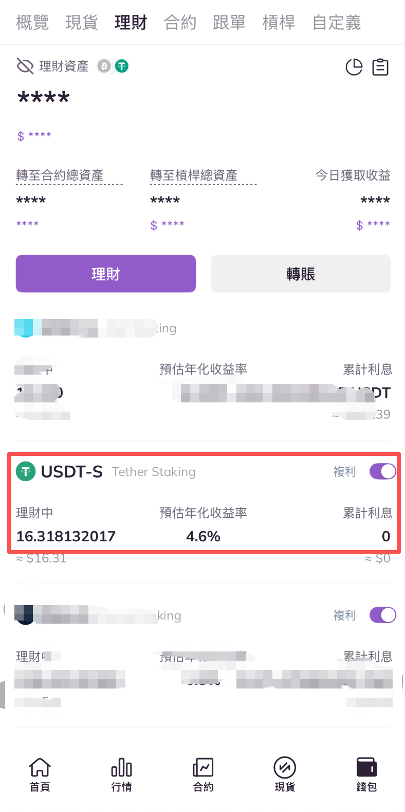 3.進入理財賬戶頁面,查看理財項目列表,點擊目標Staking資產。