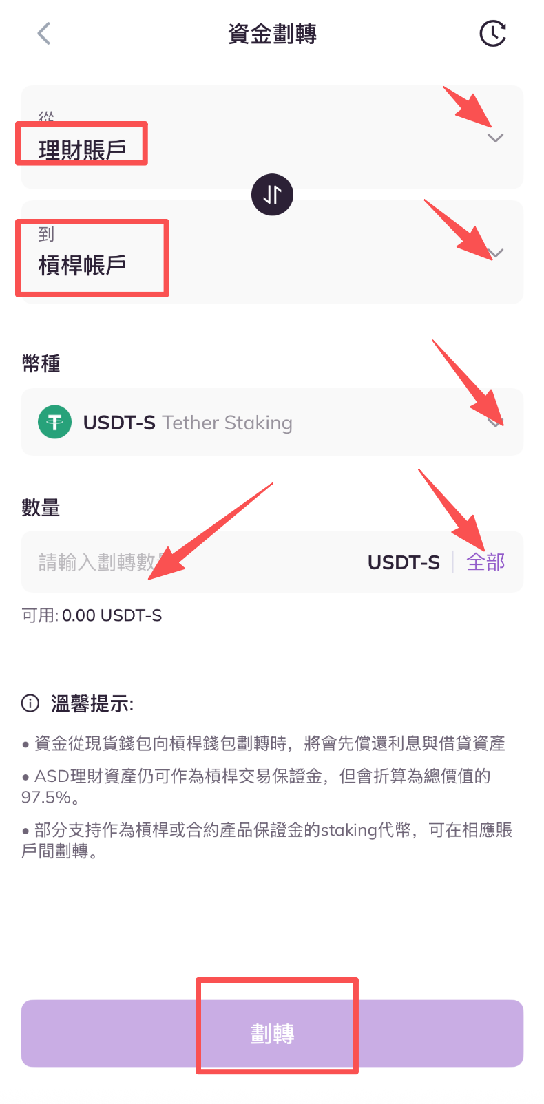 二、從槓桿交易頁面劃轉